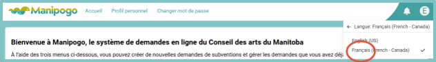 Tout le contenu des sites Web du CAM et de Manipogo, le système de demandes de subvention en ligne du CAM, est également disponible en français et en anglais.
